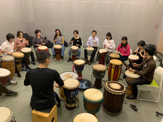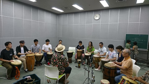 ラテンリズムの種類や捉え方、奏法などもレクチャーして頂きました ジャンベの伝統的な奏法ではあまり馴染みのないコンガなどで使われる奏法“ヒール&トゥ“もチャレンジ! 難しいけど、、楽しい!!