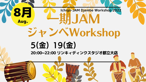 2022/8月【5.19.27】 一期JAM初心者ジャンベワークショップ!